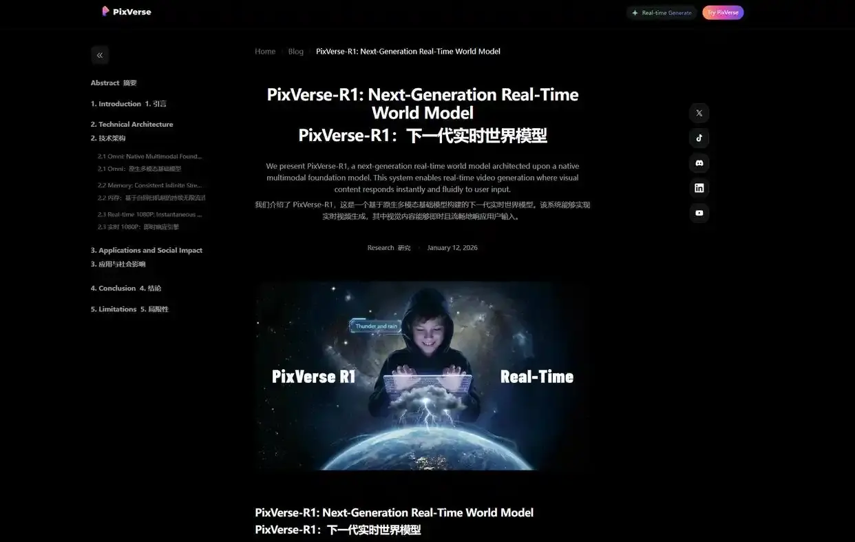 PixVerse R1 主要技術亮點:
