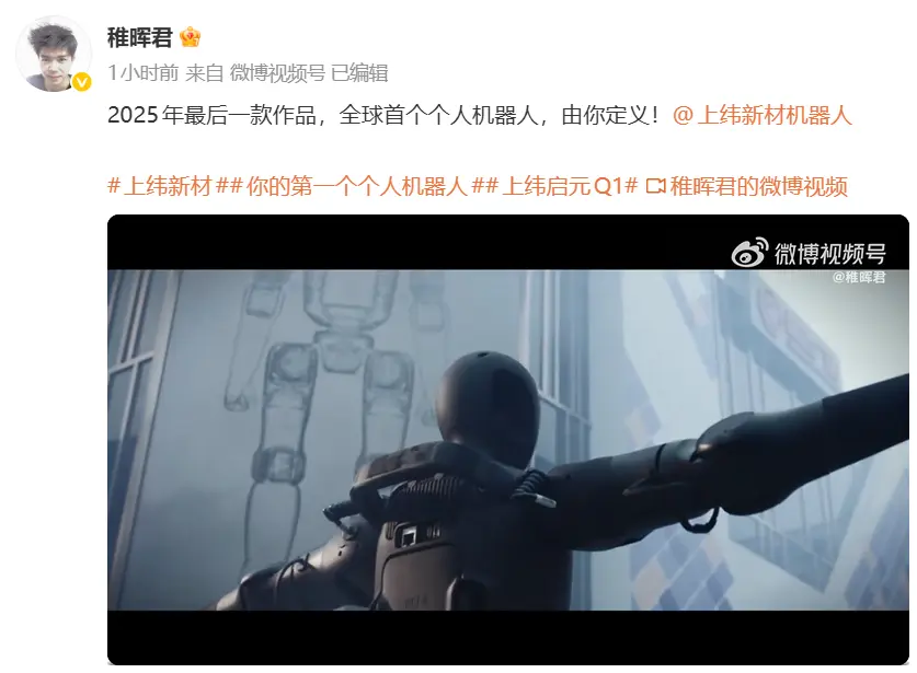 上緯新材董事長彭志輝(稚暉君)宣佈,公司將以“上緯啓元”品牌進軍個人機器人賽道,並首次對外明確了這一業務方向。
