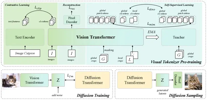 MiniMax 聯合華中科技大學首次開源了其視覺生成的關鍵技術 VTP (視覺分詞器預訓練) ,在不修改標準DiT的情況下,通過擴展視覺分詞器(Visual Tokenizers),實現了 65.8% 的生成性能提升。