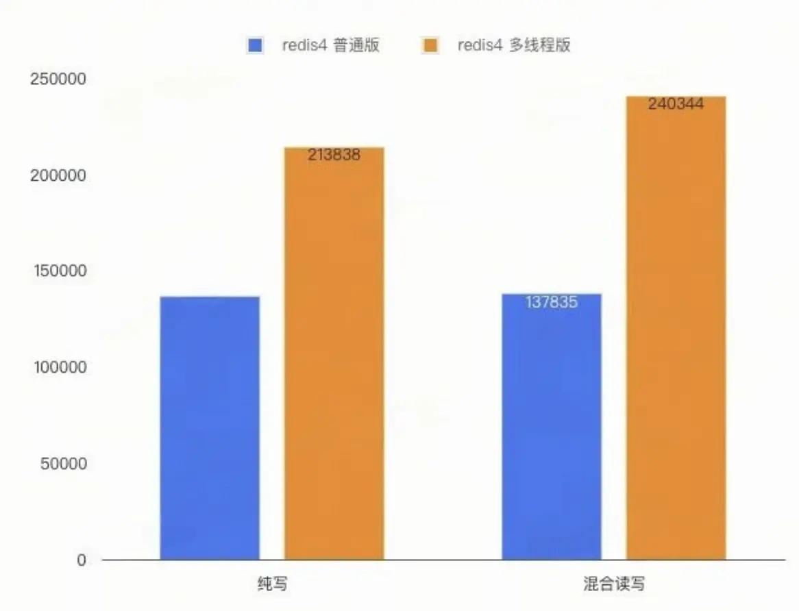 Redis6.2 版本支持 IO 多線程,在 Redis 處理讀寫業務請求數據時使用多線程處理,提高 IO 處理能力,自建 Redis 將多線程能力也移植到了 Redis4.0 版本,測試團隊測試顯示,開啓多線程,讀寫性能提升明顯。