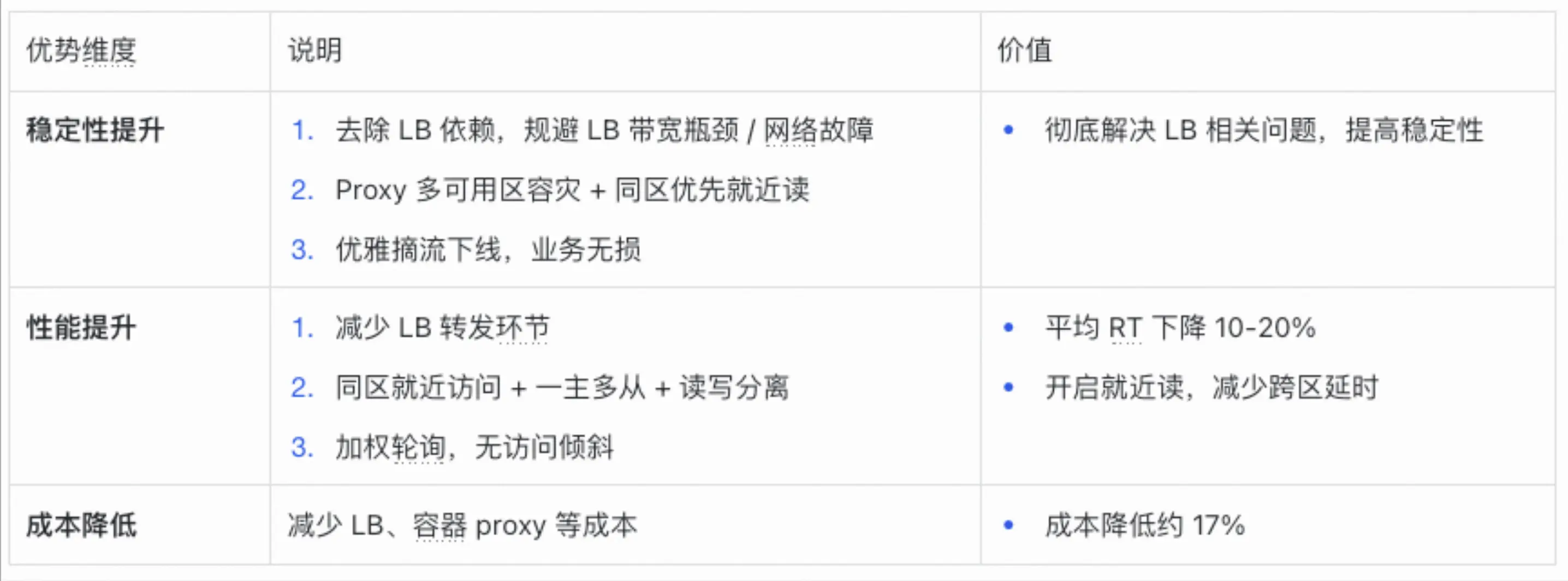 - 成本增加,容器環境 proxy 需要獨立機器部署,無法與 server 節點混部,造成成本增加。