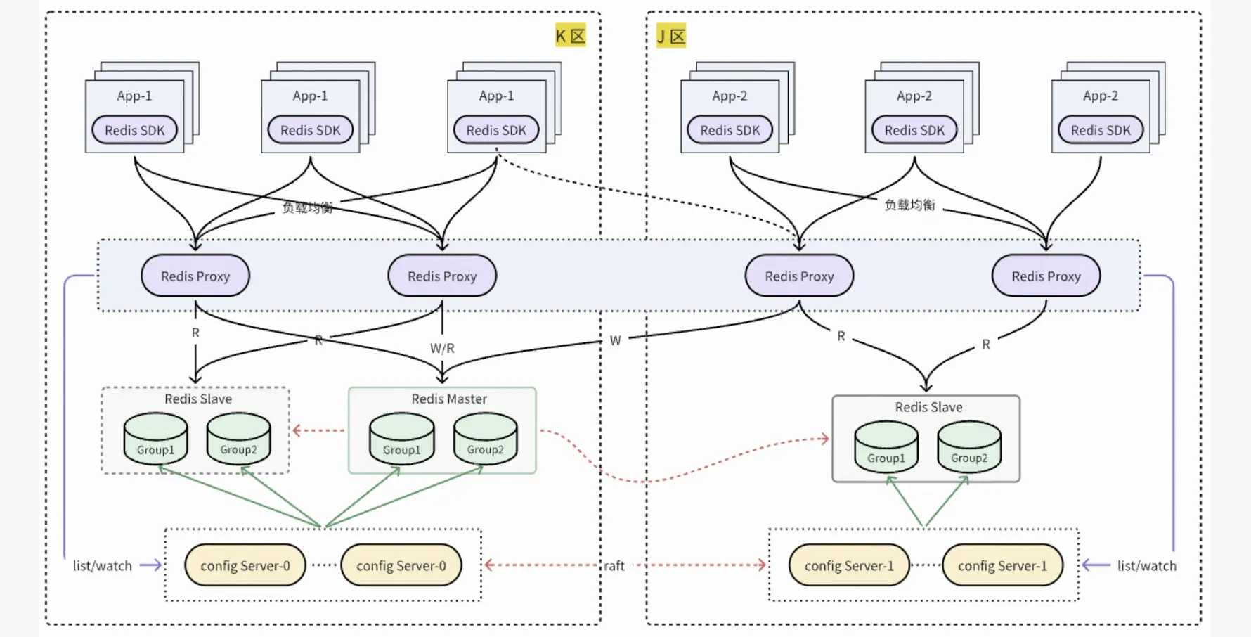 - Redis-proxy 為代理組件,業務通過 proxy 可以像使用單點實例一樣訪問 Redis 集羣,使用更簡單,並且在Redis-proxy 上提供同區優先就近讀、key 維度或者命令維度限流等高級功能;