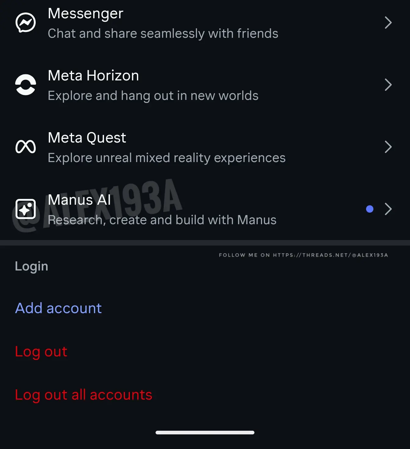 作為訂閲服務的一部分,Meta 計劃把其最近收購的通用 AI 智能體 Manus 深度整合進各平台,並繼續向企業出售獨立服務。此前已有開發者發現 Instagram 內部代碼中出現了 Manus 的快捷入口跡象。