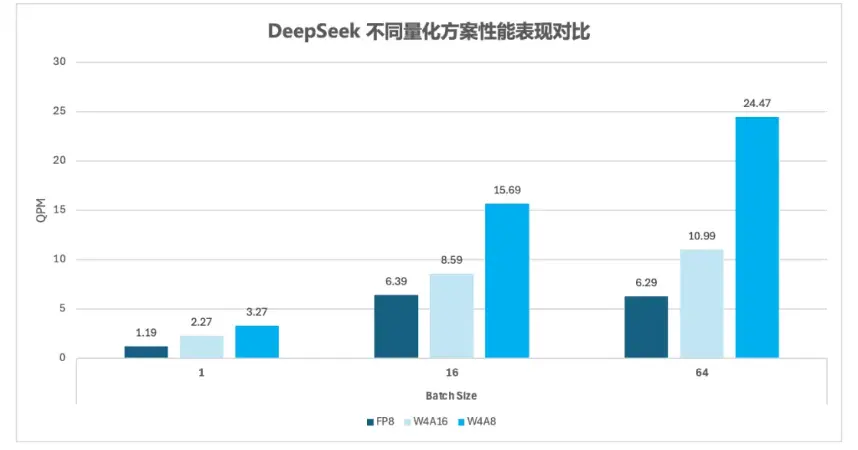 通過上述W4AFP8混合量化方案,可以將DeepSeek系列模型大小從689GB減小到 367GB,從而可以實現單機八卡部署,推理成本降低 50%。為了實現這種量化模型的高效推理,項目團隊在SGLang中實現了一種優化的推理方案,並貢獻給了開源社區。
