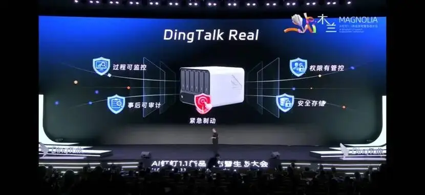 陳航表示,DingTalk Real 萬一不可控,釘釘提供了緊急功能:拔電。