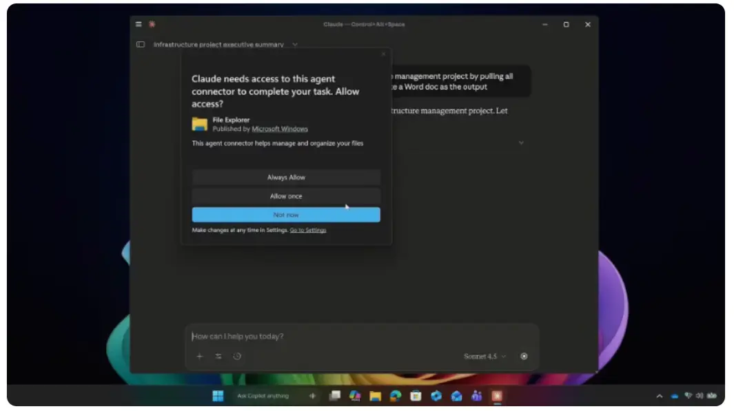 微軟在Windows11最新預覽版中測試MCP(模型上下文協議)連接器,允許Claude等第三方AI通過文件資源管理器向用户申請本地文件訪問權限,獲批後可在不上傳雲端的前提下讀取內容並完成任務。