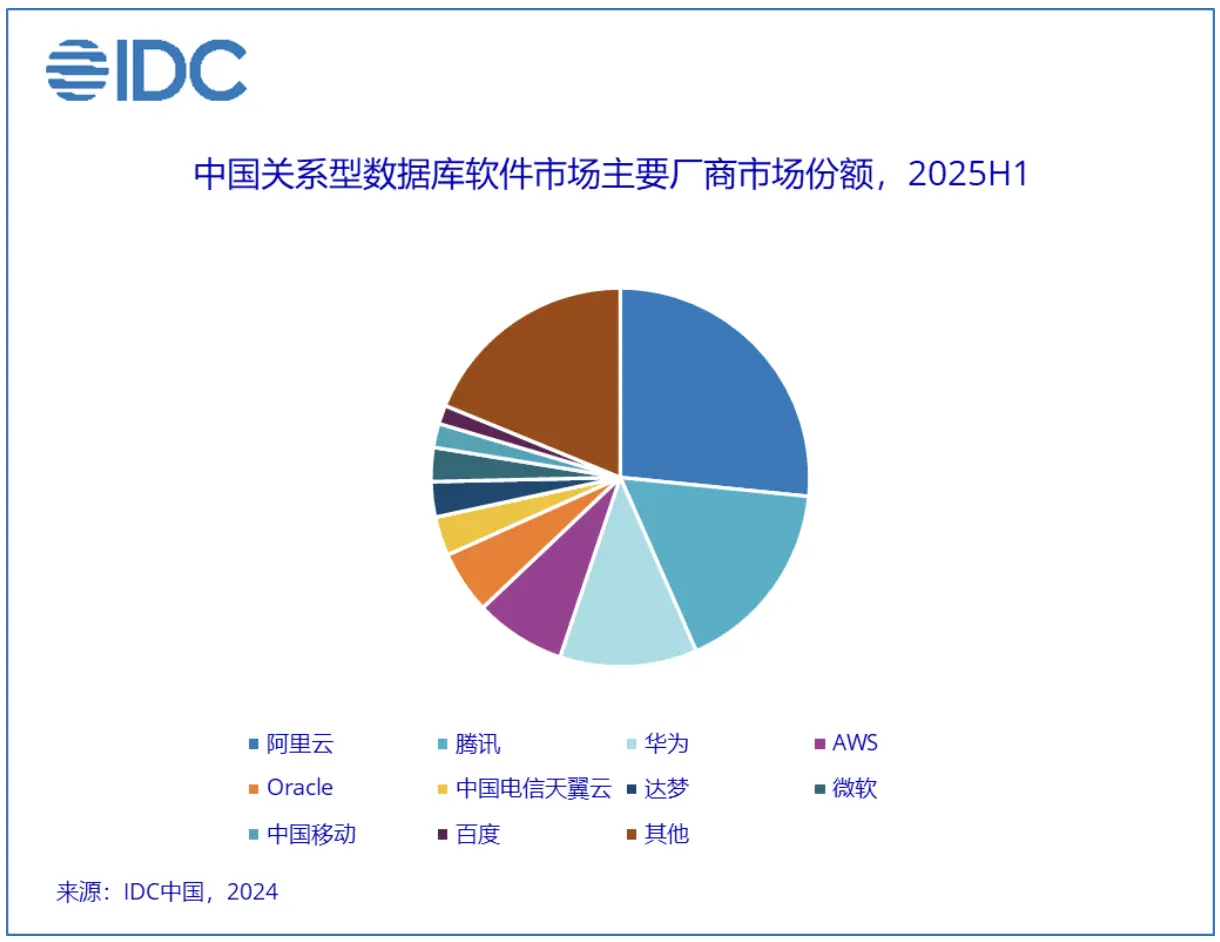IDC最新報告披露的市場數據同樣可觀,2025年上半年中國關係型數據庫軟件市場規模達22.1億美元,公有云關係型數據庫同比增長16.3%,增速優於整體市場;阿里雲位列市場前三,在雲數據庫規模化交付與行業覆蓋上的優勢,為PolarDB的持續落地與增長築牢市場基礎。