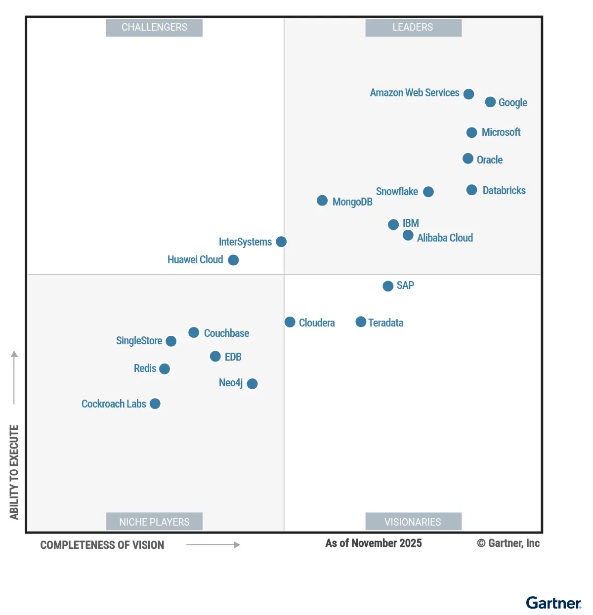 圖2:Gartner 2025年全球雲數據庫管理系統魔力象限