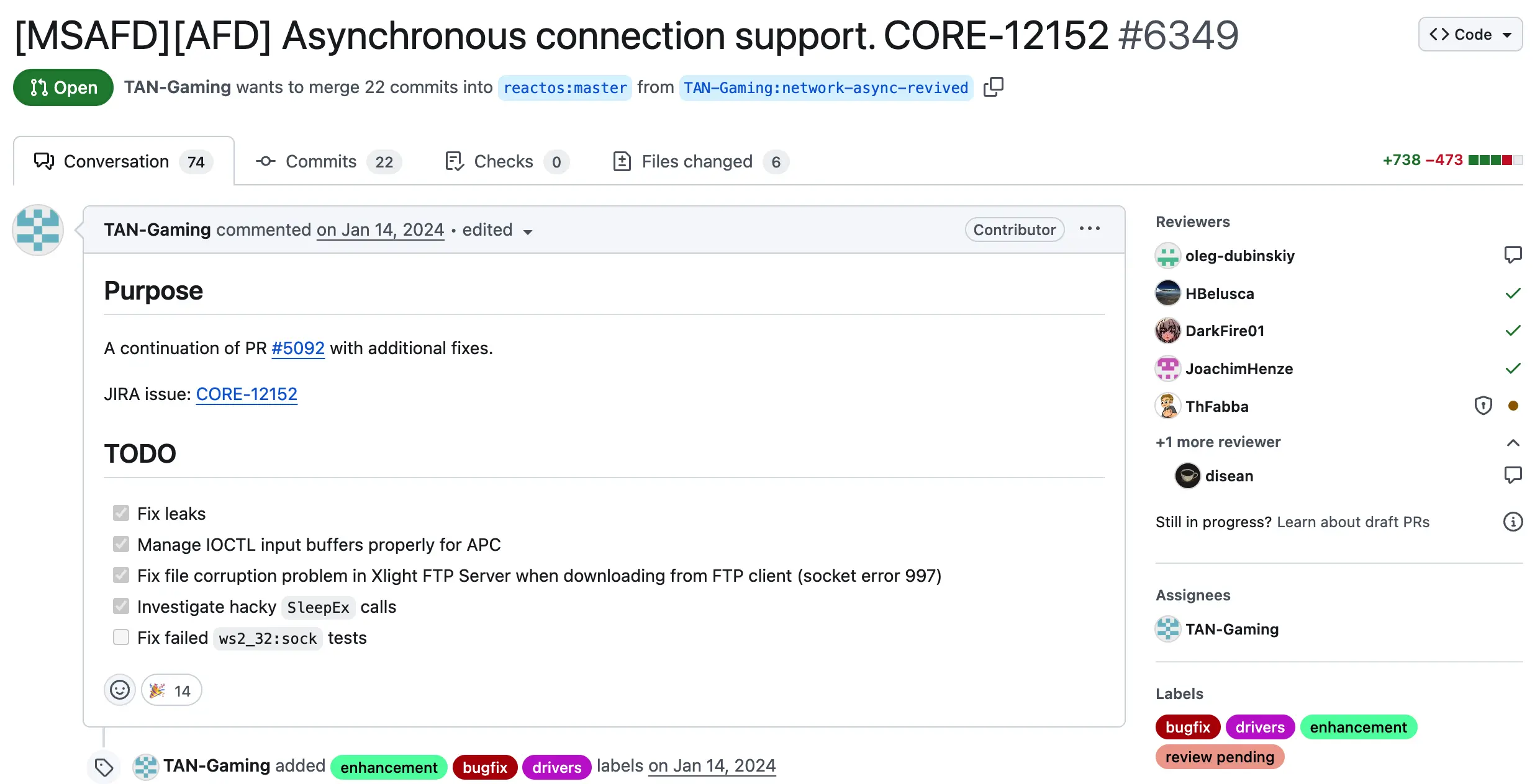 長期以來,ReactOS 的網絡堆棧在處理非阻塞套接字 connect 調用(WSPConnect 等 API) 時存在問題,導致無法正確支持現代異步網絡模式。這個問題可以追溯到 2016 年的一個 ReactOS Jira 問題,相關補丁和修復在此後多年中反覆修改,但一直未能合併。