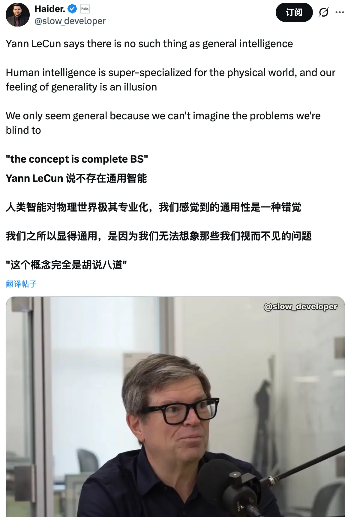 根本不存在所謂的“通用智能”,純粹就是胡扯(complete BS)。
