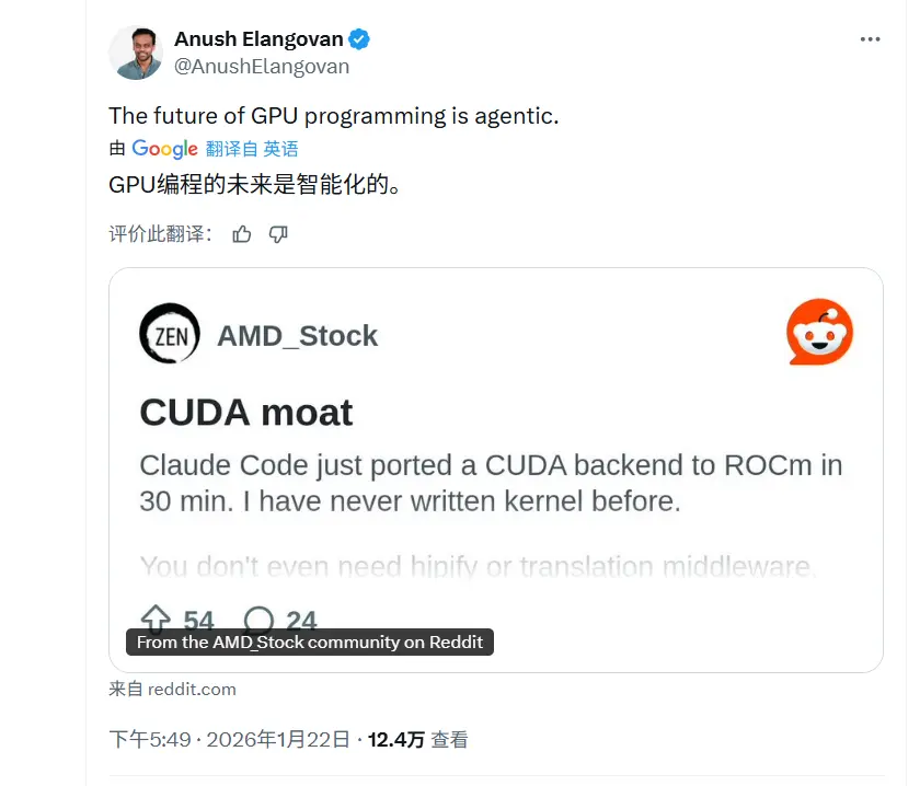 就連AMD軟件開發副總裁 Anush Elangovan 都對此深感震驚,直言GPU編程的未來,必將屬於AI智能體。