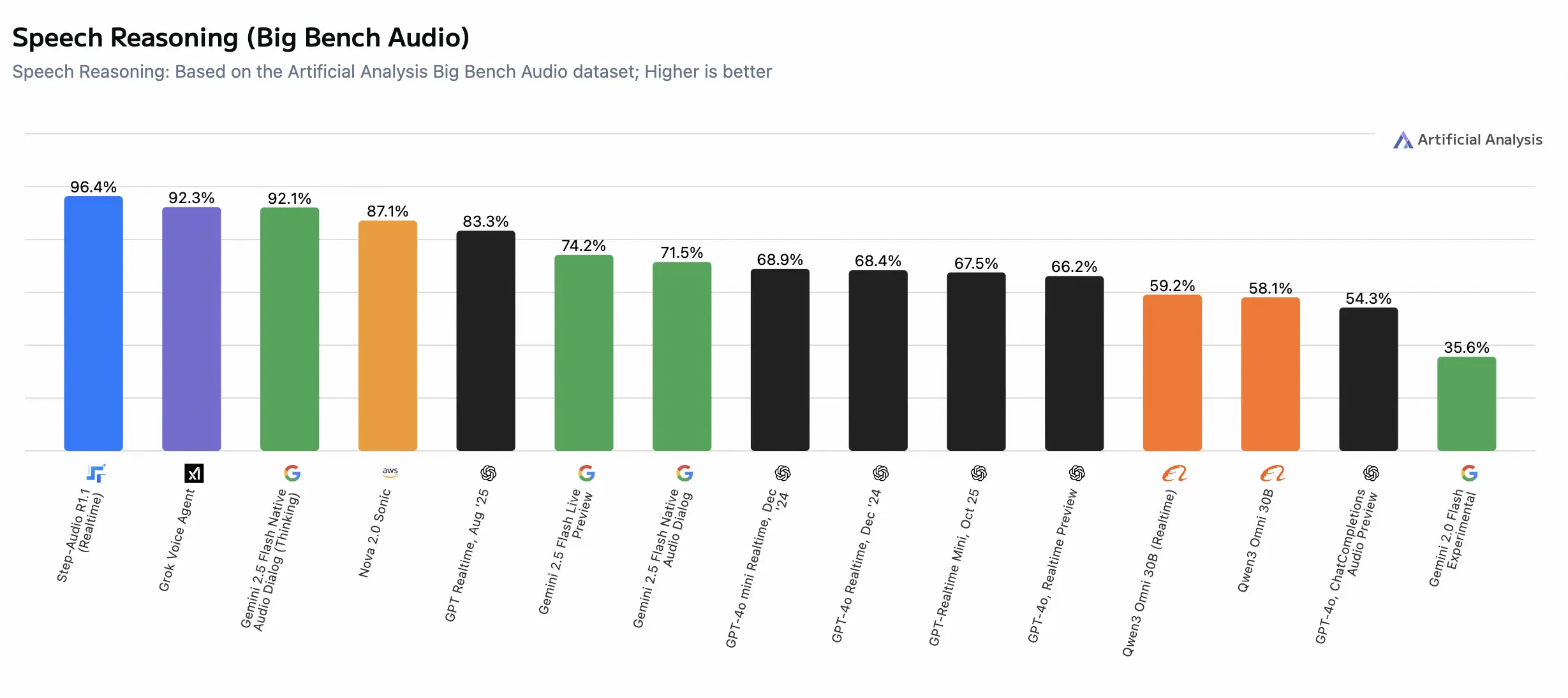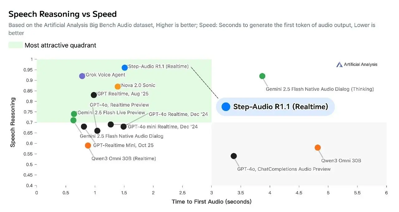 階躍星辰宣佈旗下語音模型 Step-Audio-R1.1 在大模型評測榜單 Artificial Analysis Speech Reasoning 中登頂全球榜首。