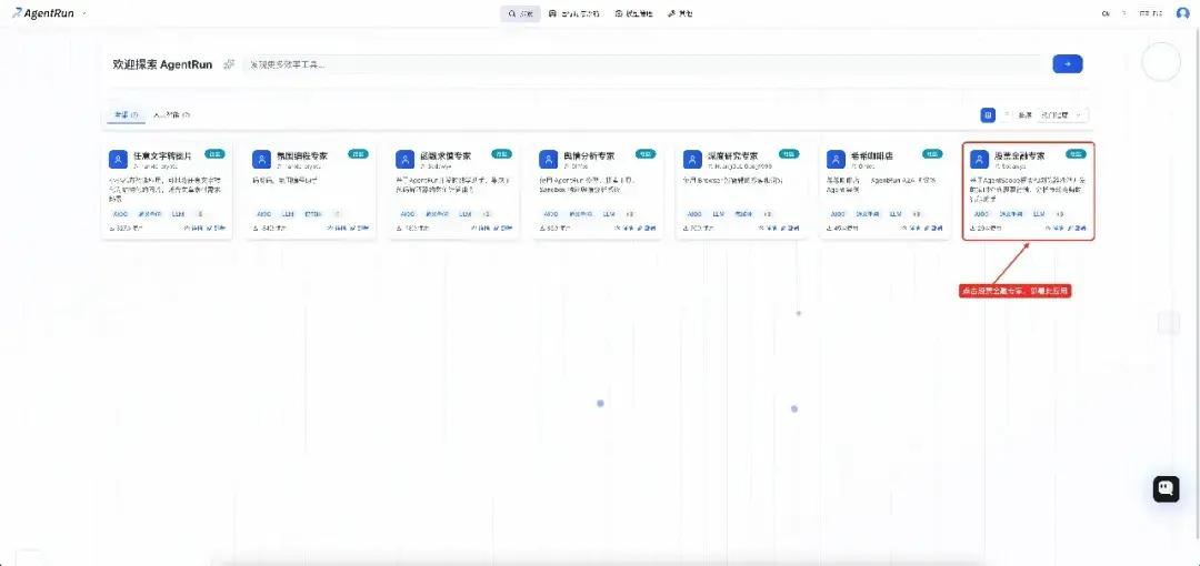 進入探索頁面,點擊股票金融專家快速部署您的 Agent 應用