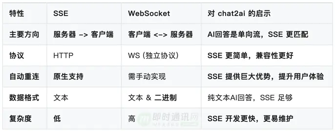 因此,對於 chat2ai 的傳輸協議選型答案是:優先選擇 SSE。