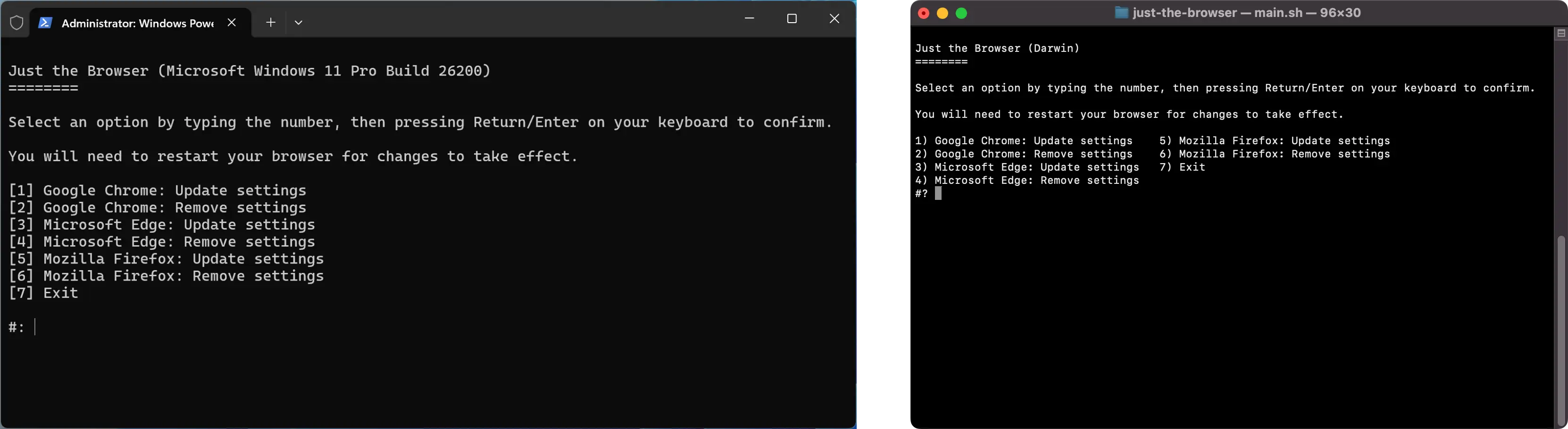該項目支持三大主流桌面瀏覽器:Google Chrome、Microsoft Edge 和 Mozilla Firefox,通過企業級隱藏配置策略(原本為組織管理設計的策略)實現深度淨化,無需複雜手動修改。
