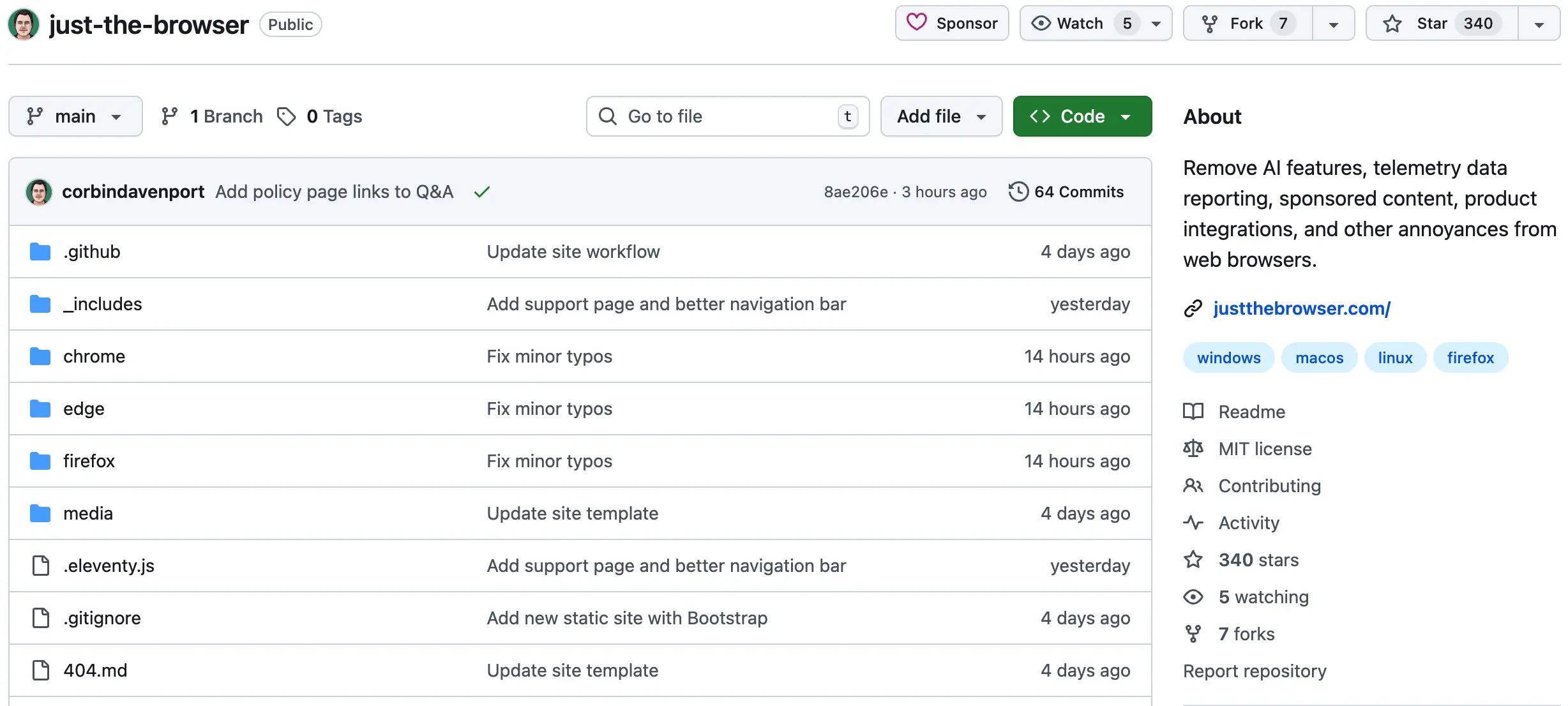 Just the Browser 是一個開源項目,旨在幫助用户徹底剝離現代瀏覽器中與核心瀏覽無關的“冗餘功能”,包括生成式 AI、遙測數據上報、贊助內容、購物插件以及各種產品整合,讓瀏覽器真正迴歸“只負責瀏覽網頁”的本質。
