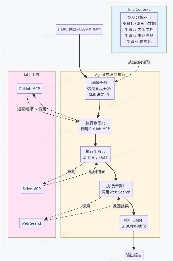 Skill的出現並不是替代MCP的出現,而是相互配合,在合適的場景下選取Skill或是MCP。某些任務Skill和MCP Server均可完成,但Skill通過執行代碼的方式可以一次性加載完整流程,但MCP Server要經歷多次查詢和多輪對話往返,這種情況下Skill更為合適,但這不意味着絕對的優勢,比如標準化文檔創建這個典型的場景,創建PPT/Word/Excel在本地使用Skill即可完成,但數據的提供則需要藉助MCP Server進行查詢。因此Skill擅長的是在本地通過執行 code的方式完成複雜任務,在用户私有數據、動態數據查詢這些情況下Skill就無法搞定了,這和用户的數據庫以及隱私強關聯,需要讓模型無法感知在執行過程中的隱私信息,Skill能夠與MCP Server互補完成更為複雜的流程。