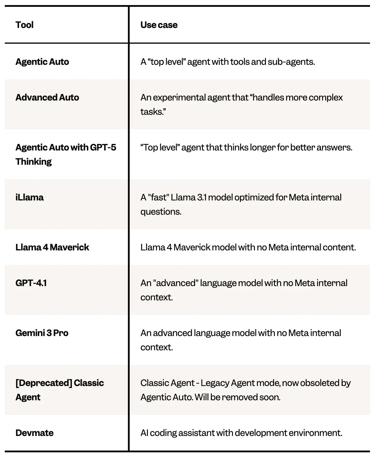 從曝光的名單裏顯示,Meta 目前已經允許 GPT-5、GPT-4.1、Gemini 3 Pro、Claude 等 AI 模型,甚至連 Google 的 NotebookLM Pro 也在內部使用。