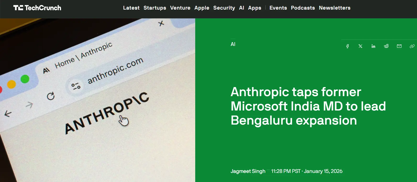 Anthropic 已任命前微軟印度區總經理 Irina Ghose 領導其印度業務,該公司正準備在班加羅爾開設辦事處。Ghose 曾在微軟工作24年,於2025年12月卸任。