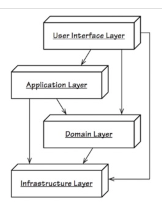 在DDD中,標準的工程結構分為4層。用户接口層、應用層、領域層和基礎設施層。