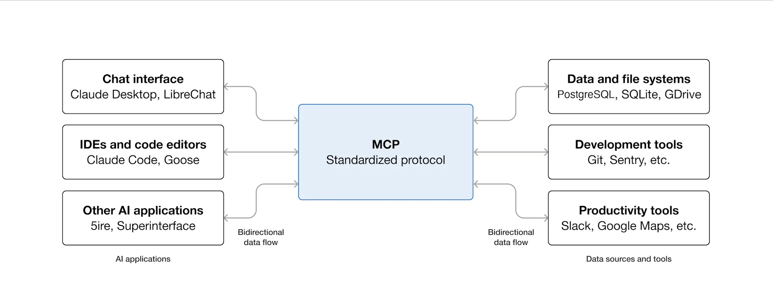 通俗理解: MCP就像是「AI應用的USB接口標準」。就像USB讓不同設備都能接入電腦一樣,MCP讓不同的數據源和工具都能以統一方式接入AI應用。