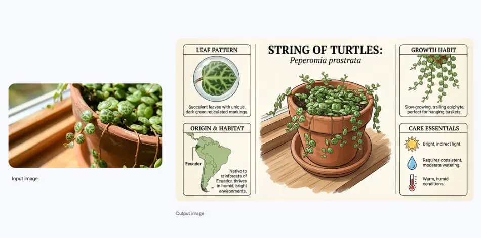 藉助 Gemini 3 的先進推理能力,Nano Banana Pro 不僅能生成精美的圖像,還能幫助創建更有用的內容。可以獲得精準的教育性講解圖,幫助你深入瞭解新主題,例如基於你提供的內容或真實世界事實生成的、包含豐富上下文的信息圖表和示意圖。Nano Banana Pro 還可以連接到 Google 搜索的知識庫,幫助用户快速創建菜譜快照或可視化實時信息,例如天氣或體育賽事。