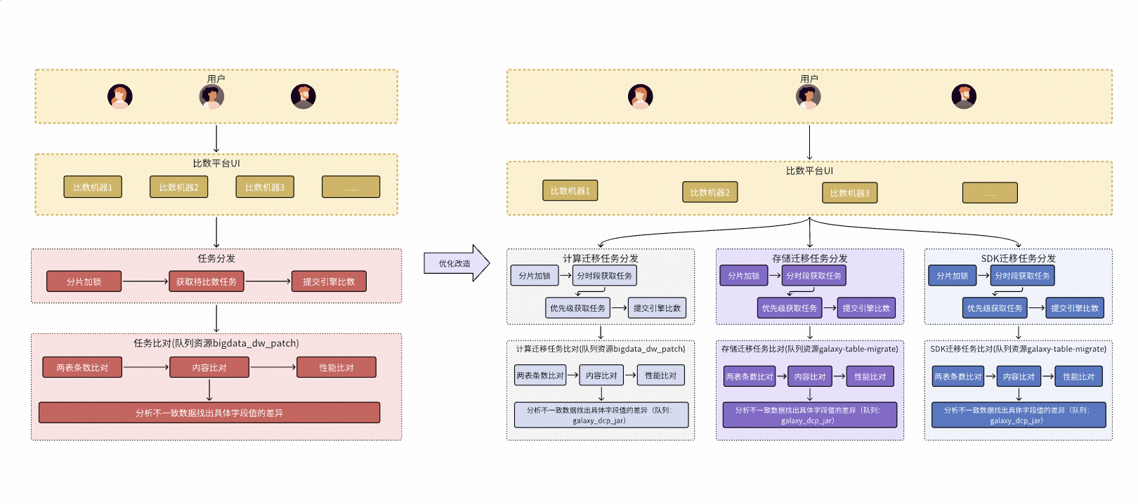 - 效率瓶頸:每天需要完成數千任務的比對,累計待遷移任務達10萬+,涉及表數十萬張。