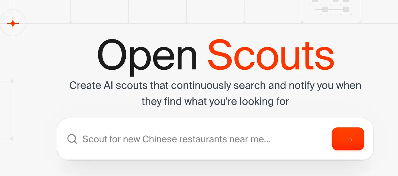 Firecrawl 開源了名為 Open Scouts 的 AI 驅動 Web 監控平台,用户可以創建自動化 scouts 來按計劃搜索網絡,並在找到目標信息時發送電子郵件警報。