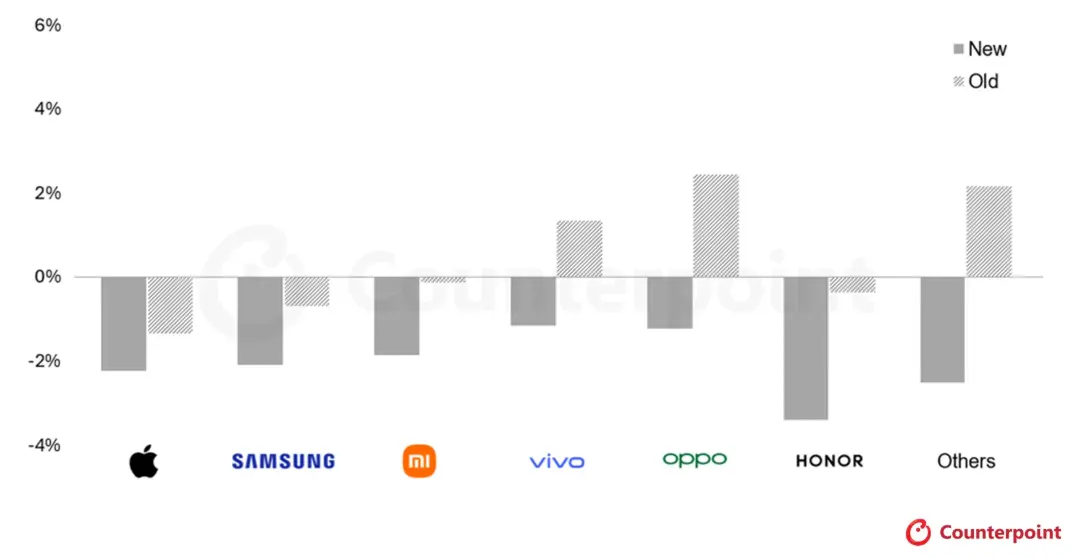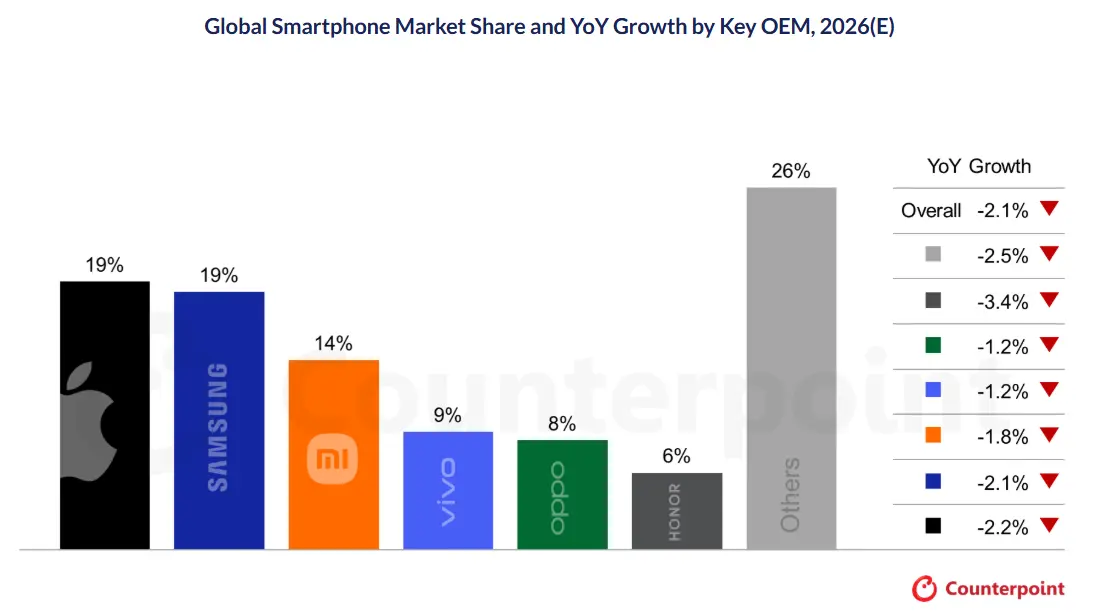 Counterpoint 近期發佈的一項研究預測,智能手機的平均售價將上漲 6.9%,幾乎是此前預測的 3.6% 漲幅的兩倍。該研究還顯示,未來一年智能手機的銷量將下降 2.1%。