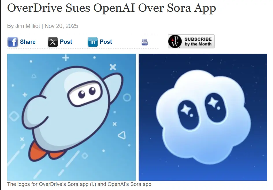 數字圖書館巨頭OverDrive向俄亥俄州北區聯邦法院提起訴訟,指控OpenAI的文本生成視頻應用“Sora”在名稱、圖標及配色方案上與自家面向學生的閲讀App“Sora”構成混淆,涉嫌商標侵權、不正當競爭與欺詐性商業行為。