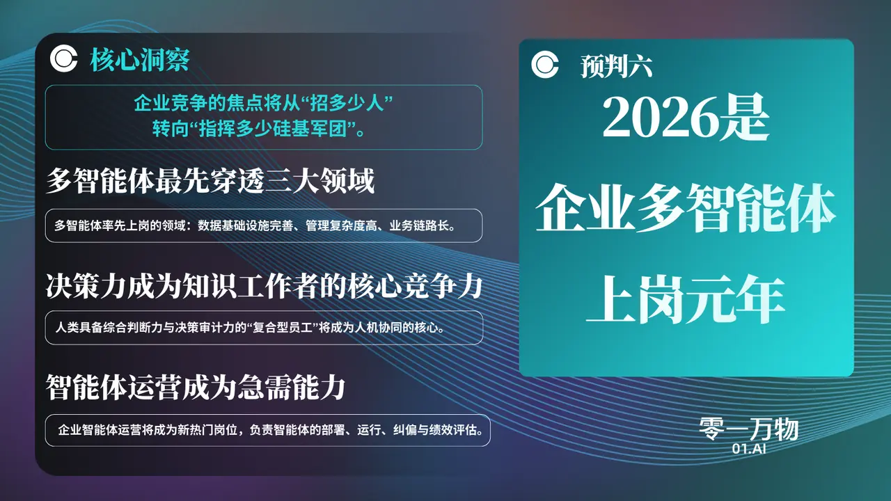 基於與某世界能源巨頭、友邦等多家行業頭部客户的AI變革實踐,零一萬物總結出中國企業智能體演進的六大核心預判: