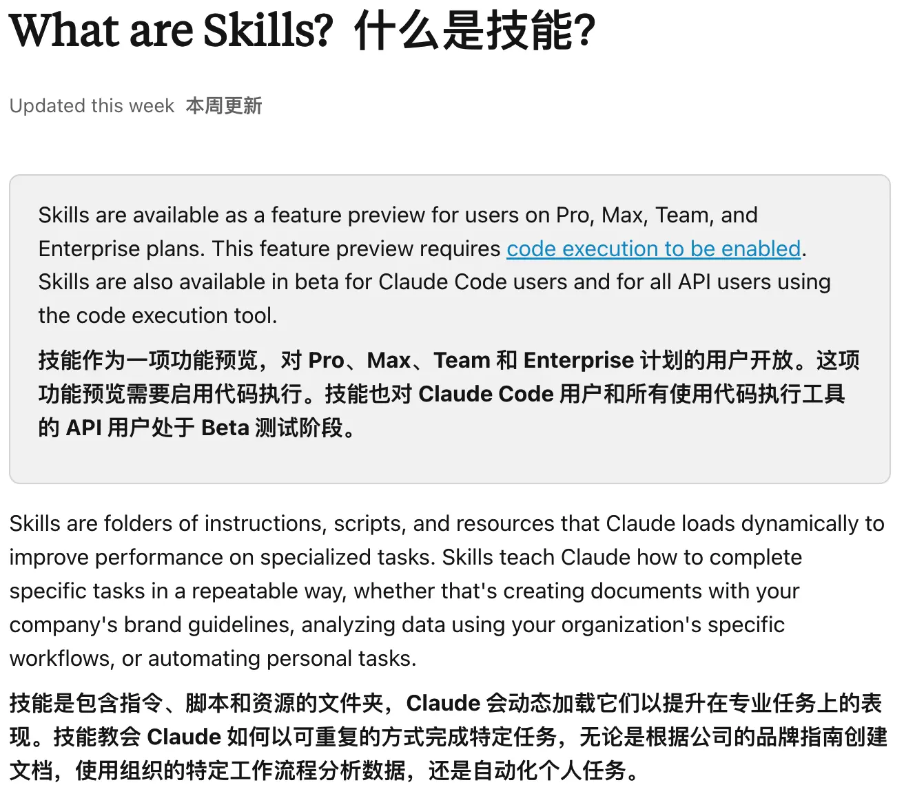 Skills功能允許用户通過可打包、可複用的文件夾形式定義指令集。這些文件夾內含Markdown説明文件(含YAML元數據)、腳本與資源,用以指導模型高效完成特定任務。該功能現已向所有付費用户開放,支持 Claude.ai、Claude Code 及 API。