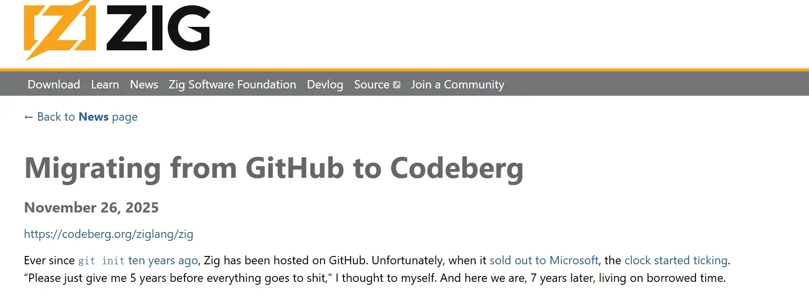 Zig軟件基金會主席兼首席開發者Andrew Kelly在宣佈遷移時稱: