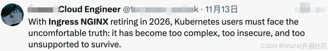 Ingress-NGINX 社區項目在 2026 年 3 月後,將不再發布新版本,不再修復漏洞,也不會針對可能發現的任何安全漏洞提供更新。作為一個在大量用户默認使用的方案,突然停止研發,並且留給用户並不多的遷移時間,確實在業界引起了巨大的震動。