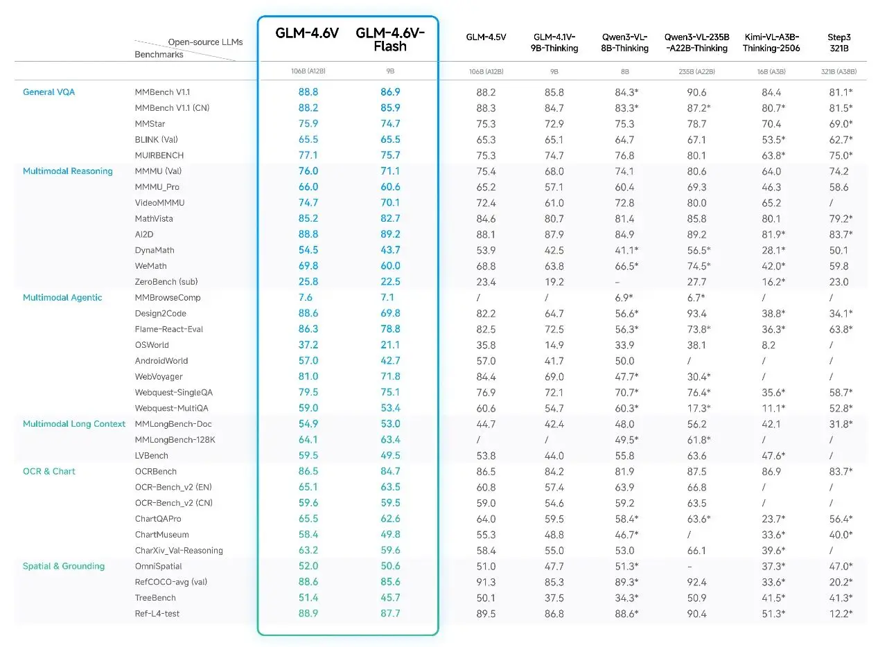 - GLM-4.6V-Flash(9B):面向本地部署與低延遲應用的輕量版。