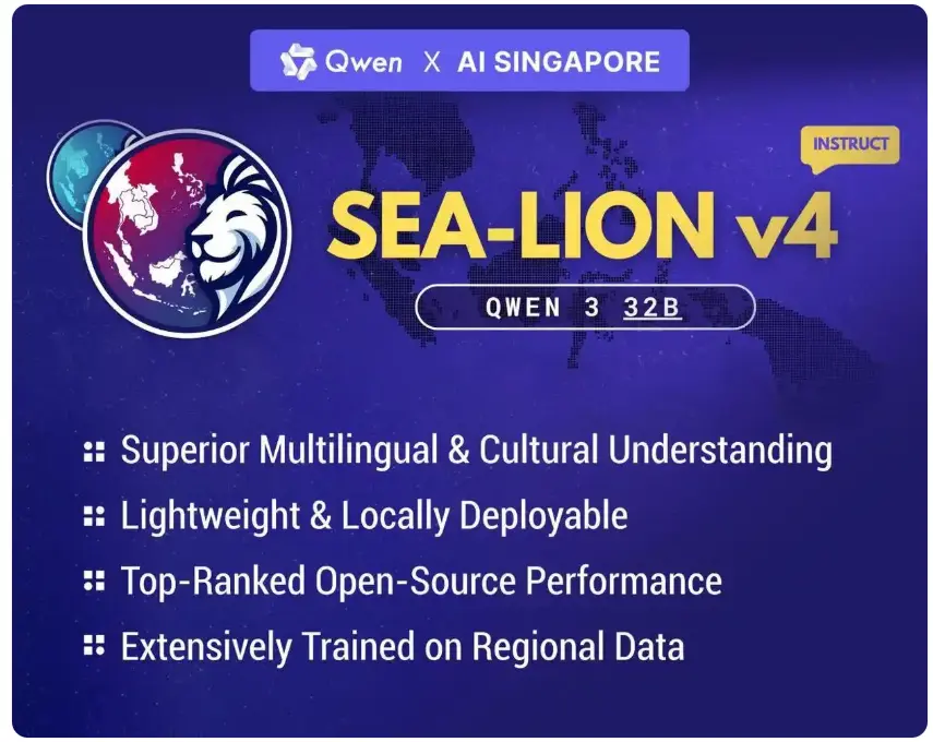 11月25日消息,據新加坡媒體報道,新加坡國家人工智能計劃(AISG)正在進行一次重大戰略調整,在其最新的東南亞語言大模型項目中,放棄了Meta模型,轉向阿里巴巴的通義千問Qwen開源架構,標誌着中國開源AI模型在全球影響力版圖中的一次關鍵擴張。