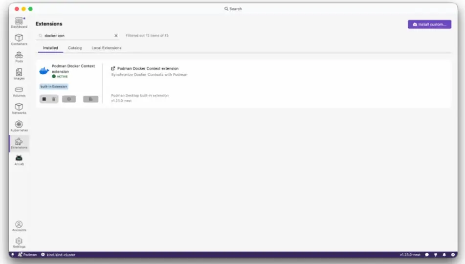 Podman Desktop 現在會為每個註冊的 Podman 機器自動創建一個 Docker context,增強與 Docker 工具的互操作性。每個 context 以 podman- 為前綴,基於 Podman 機器名稱,用户可通過標準 docker context use 命令無縫切換。