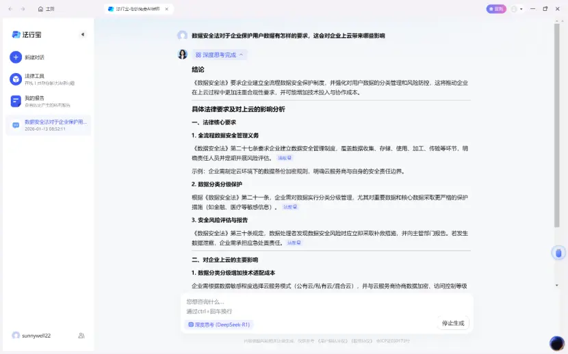 同樣以網絡工程為切入點,我們先在天禧個人智能體3.5版的AI Space中選取一個法律專業大模型,再以《數據安全法》為主題讓智能體總結法規在行業的落地情況,並從企業在收集、分析和使用角度分析相關的要點和建議,以便企業能夠在接下來的系統架構設計層面做到合法合規、不出紕漏。