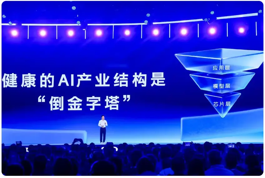 百度創始人李彥宏在會上回應 AI 泡沫爭議,稱 AI 產業結構正從不健康的“正金字塔”轉變為健康的“倒金字塔”。他表示。過去AI產業架構像正金字塔,最底層的芯片拿到了絕大部分價值,而芯片之上的模型、應用,收穫的經濟效益依次遞減,但這一產業結構非常不健康且可不持續。