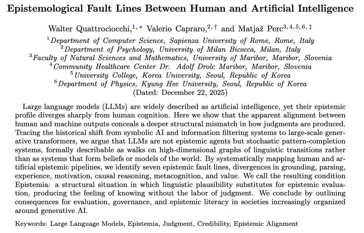 他們把這種現象稱為 Epistemia(一種認識幻象或語言性認知錯覺):我們經常會被語言的流暢性誤導,以為自己已經 “知道了”,但其實本質上並沒有真正理解。