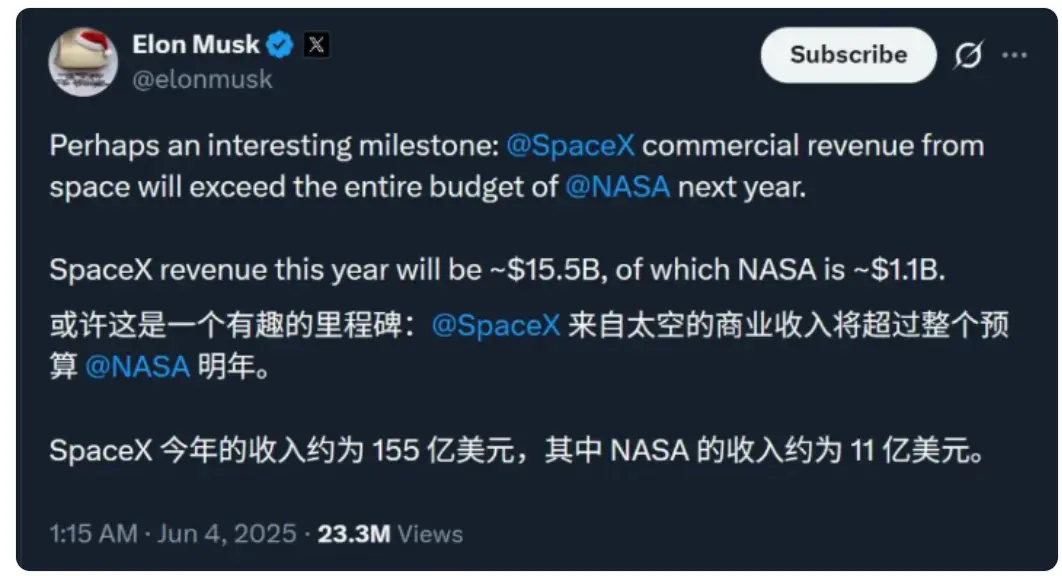 此外,SpaceX 還預計將在明年下半年進行首次公開募股(IPO)。其主要業務包括火箭發射和衞星運營。多年來,SpaceX 在火箭發射市場中穩居領先地位,且與 NASA 等官方機構的合作也相當緊密。其星鏈(Starlink)項目更是擁有約9000顆衞星,成為公司重要的收入來源。