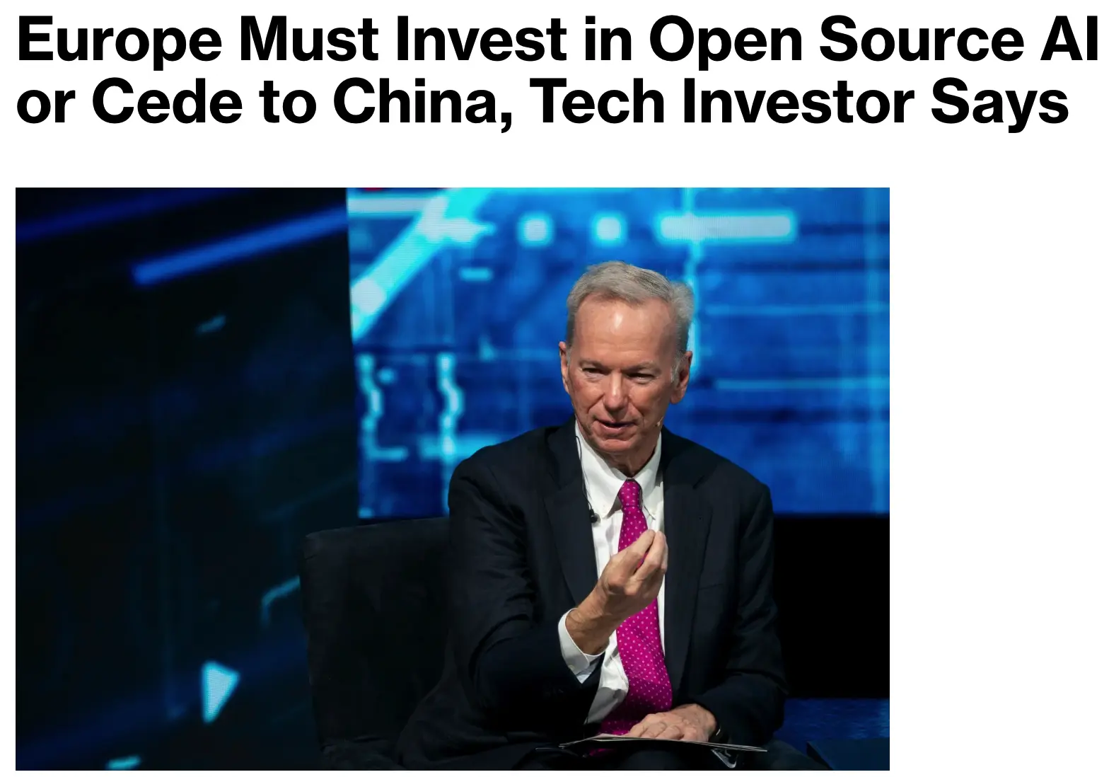 1 月 20 日,在瑞士達沃斯世界經濟論壇上,谷歌前首席執行官、科技投資人埃裏克·施密特(Eric Schmidt)指出,歐洲需要大幅投資開源人工智能技術,否則可能陷入對中國 AI 模型的依賴。