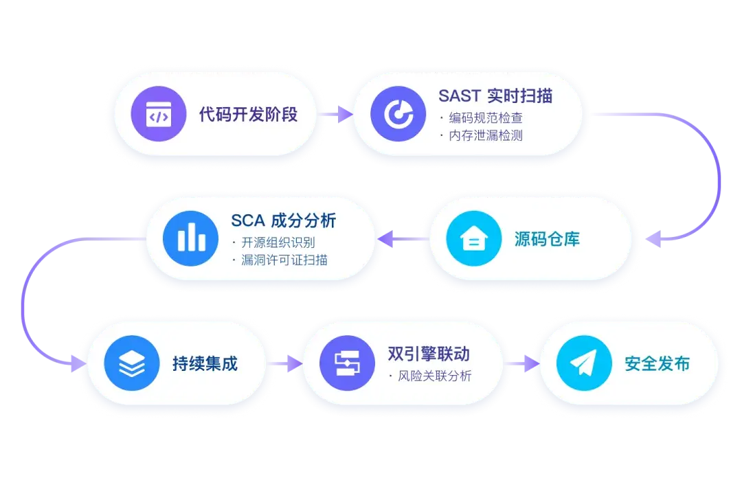 SAST 針對代碼的本源安全,通過「快速掃描 + 深度分析」的雙模式能力,精準捕捉開發環節的編碼漏洞。