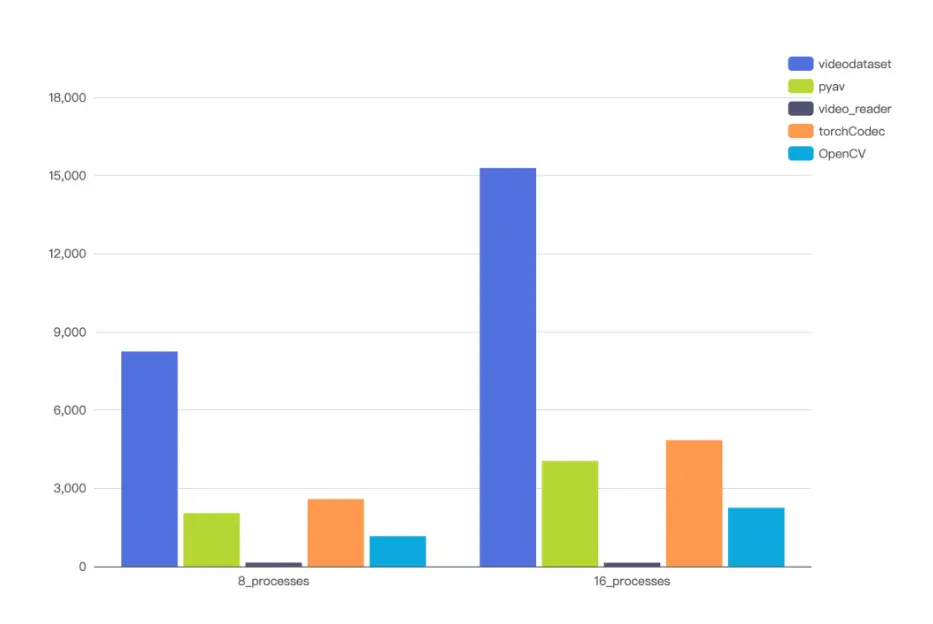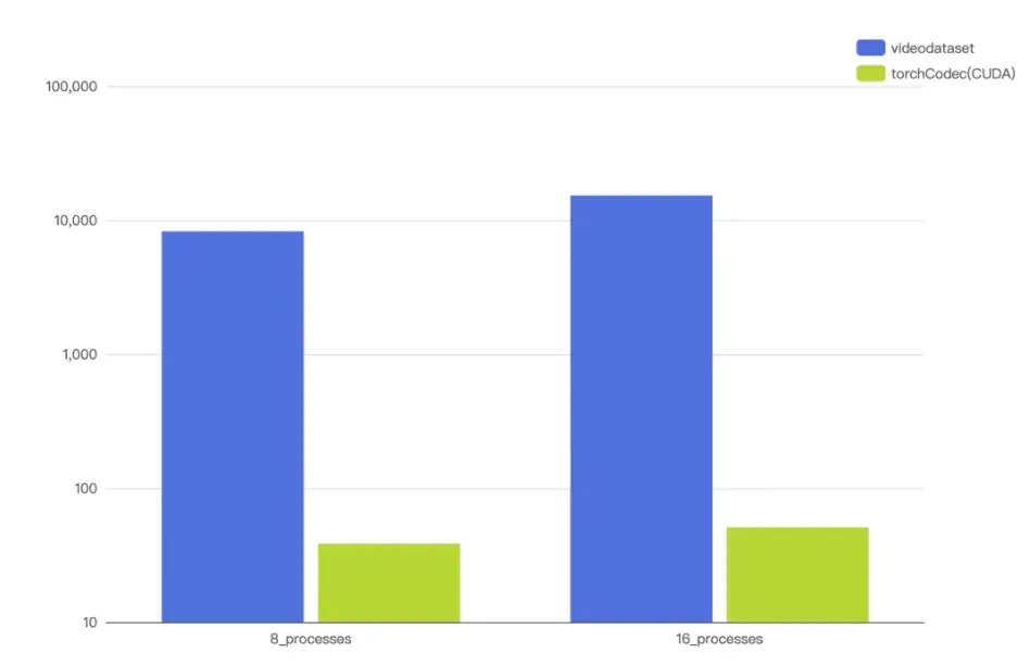 同時,由於支持多解碼器複用,在面對實際訓練中海量視頻隨機解碼的場景下,VideoDataset 的解碼吞吐量相比主流 GPU 硬件解碼方案同樣也有明顯的優勢。