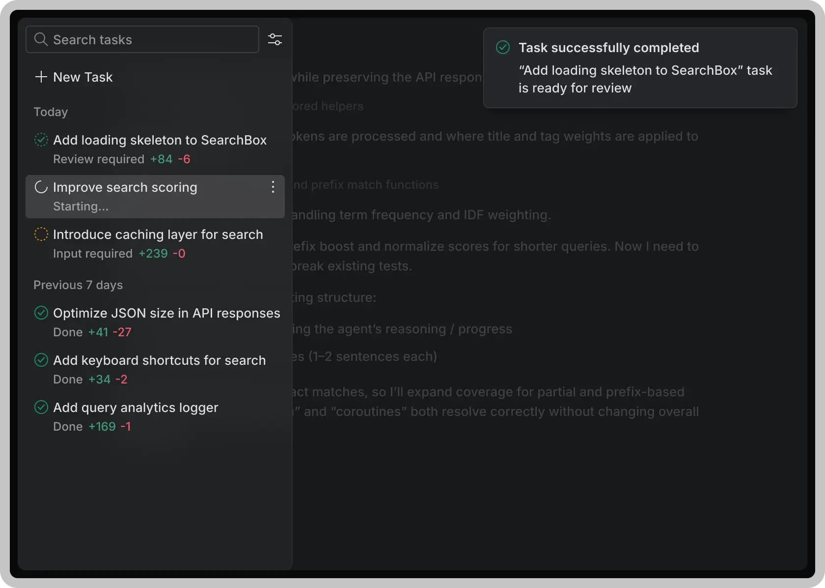 根據官方公佈的信息,這款產品名為“Air”,定位是 Agentic 開發環境,允許用户將編碼任務委託給 AI Agent,並進行全面監督:定義任務,並行運行 Agent,在 Agent 之間切換,查看結果,然後提交。