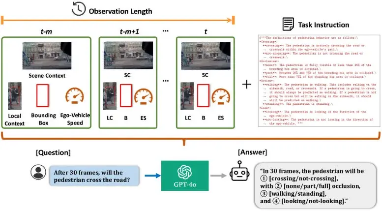 這一研究成果標誌着自動駕駛技術從“被動反應”向“主動直覺”的重大跨越。傳統的自動駕駛系統通常只能識別行人的當前位置和移動軌跡,而 OmniPredict 則引入了多模態大語言模型(MLLM)技術,使其具備了類似人類的推理能力。該系統能夠敏鋭地捕捉行人的姿態變化、猶豫瞬間、身體朝向甚至眼神壓力等細微信號,從而推斷行人究竟是準備過馬路、只是在路邊等待,還是會有其他突發行為。