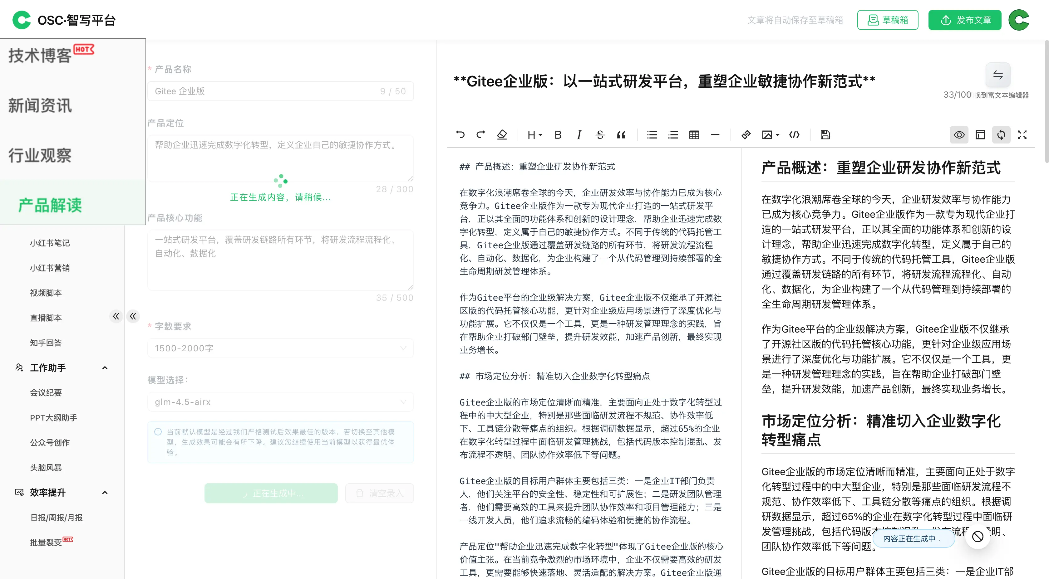 OSCHINA 全新的“智寫”創作平台為企業與開發者打造了一個全新、智能的內容創作與分享生態。