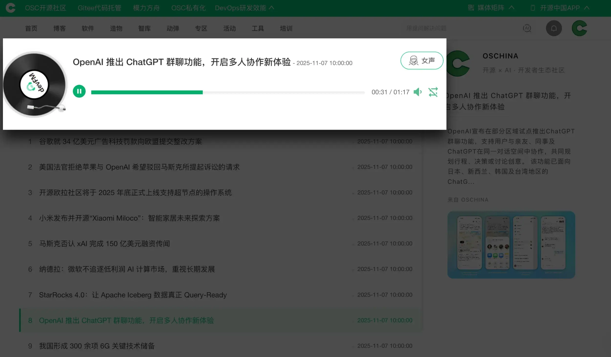 簡單開場之後,各位請繼續閲讀,瞭解新版 OSCHINA 深度融合 AI 能力的重磅功能。