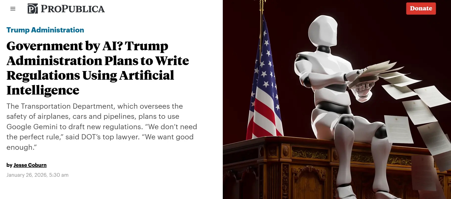 在內部溝通中,DoT 律師 Daniel Cohen 向員工展示了 AI “革命性”的制訂效率。儘管傳統的法規起草通常需要數月甚至數年,但演示顯示 Gemini 可以在“幾秒鐘內”生成草案。DoT 總法律顧問 Gregory Zerzan 更是直言不諱地表示:“我們不需要 XYZ 領域完美的規則,甚至不需要非常好的規則。我們追求的是‘足夠好’,目標是‘覆蓋全場’。”