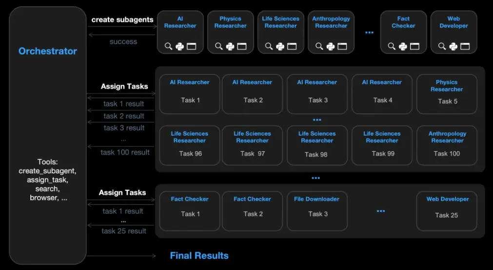 Agent 集羣的規模化訓練極具挑戰。為此,項目團隊重構了強化學習基建,並專門優化了訓練算法,以確保能達到極致的效率和性能。目前,這一實驗性功能已開啓 Beta 測試,並將於近期逐步開放。